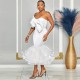 Sexy Slim Contrast Color Tube Top Off Shoulder 3D Bow Mesh Hip Skirt Set