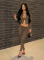 Fashion Slim Fit Elastic Leopard Print Knit Two Piece Suit