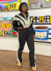 Casual Patchwork Contrast Color Jacket + High Waist Straight Trousers Two-piece Set