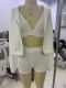 Solid Color Knitted Zipper Hooded Cardigan Triangle Cup Bra High Waist Shorts Three-piece Set