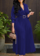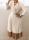 3 Colors Fashion Women'S Suit Collar Stylish Elegant Pleated Dress (Including Belt)