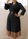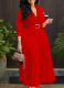 3 Colors Large Size V-Neck Pleated Dress (With Belt)