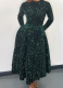 5 Colors Round Neck Long Sleeve Solid Color Sequins High Waist Temperament Mid-Length Dress