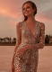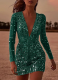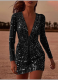 Fashionable and Sexy Deep V Long Sleeve Sequin Dress