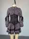 Sweet and Fresh Printed Waist-length Long-sleeved Short Lace Dress