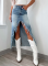 New Distressed Washed High-waisted Irregular Raw Edge Denim Skirt