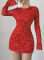 Round Neck Long Sleeve Sexy Leopard Print Strappy Backless Short Dress