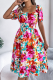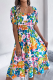 Casual Floral Square Neck Short Sleeve Tight Waist Ruffle Dress
