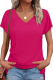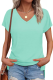 Solid Color V-Neck Short-Sleeved Slit Women'S T-Shirt