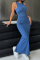 Blue Denim Round Neck Sleeveless Slim Fit Hip Dress