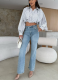 Blue New Denim Cardigan Sleeveless Lapel Waist Dress