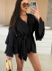 2025 Solid Color V-neck Irregular Lace Long Sleeve Loose Dress