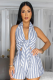 Sexy Halterneck Strappy Striped Backless Jumpsuit