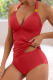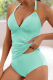 Solid Color Halter Neck Split V-Neck Strappy Two-Piece Swimsuit With Shorts