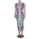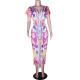 Fashion Sleeveless Gyaru Print Long Suspender Dress