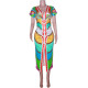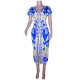 New Style Elegant Square Neck Printed High Waist A-line Irregular Short Dress
