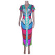 Ethnic Style V-neck Tight Slit Positioning Pleated Dressen