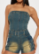 Tube Top Slim High Elastic Washed Denim Jumpsuit Wholesale