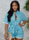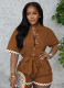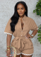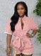 Summer Fashion Casual Lapel Lace-Up Jumpsuit Shorts For Women