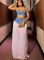 Sexy Suspender Print Color Matching Hip Long Skirt Two Piece Set