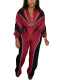 Stylish Color-blocked Two-piece Set With A Zippered Waist Top and Straight-leg Pants