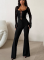 Casual Solid Color Versatile Square Neck Pleated Basic Suit