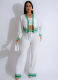 Drawstring Zipper High Waist Slim Fit Wide Leg Trousers Two Piece Set
