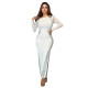 Sexy Slim-fit Contrast Color Lantern Sleeves Off-shoulder Elastic Hip-wrapped Slit Dress