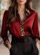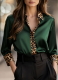 New Slim-fit Long-sleeved Leopard Print Round-neck Spliced Satin Shirt