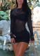 2025 Sexy Long-Sleeved Mesh Patchwork See-Through Bodycon Mini Dress