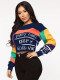 Casual Round Neck Color Block Letter Print Drawstring Sweatshirt