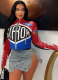 Hot Girl Street Printing Stand Collar Zipper Coat