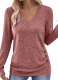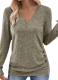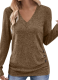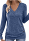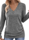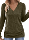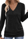 Long-Sleeved V-Neck Elegant Gathered Button Solid Color T-Shirt
