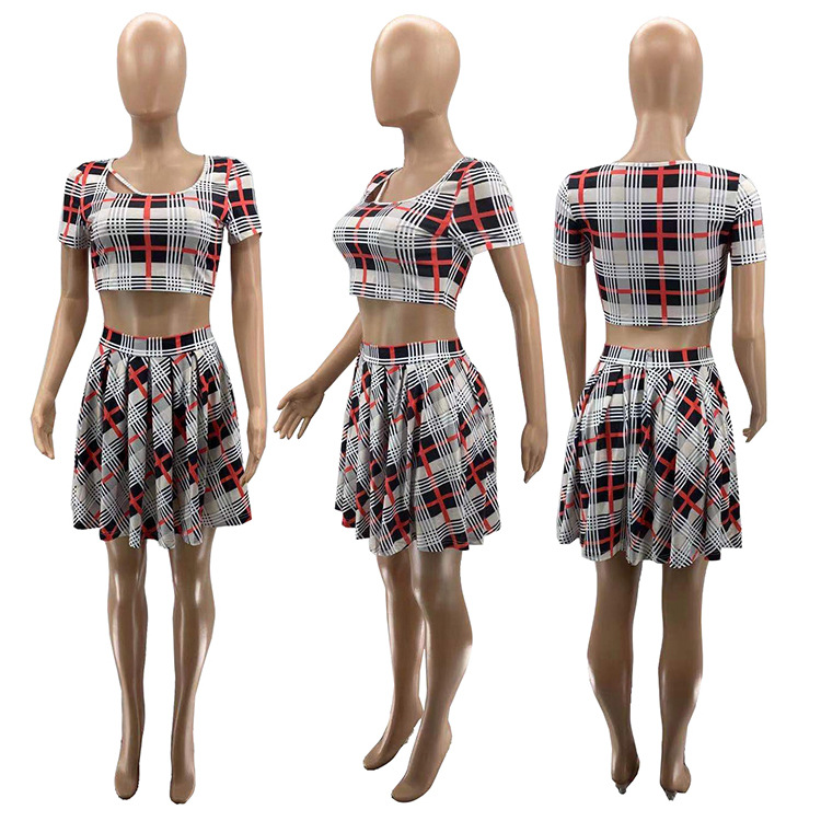 Copy| Product Name | Printed Plaid Fashion Sexy Pleated Skirt Suit |