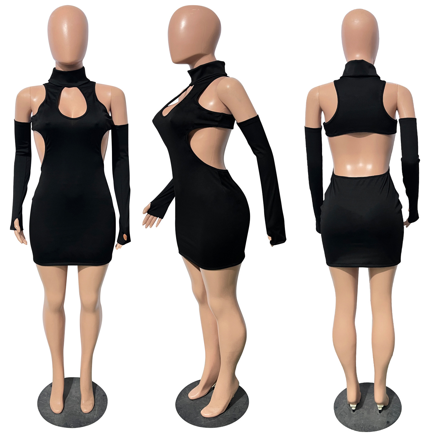 Copy| Product Name | Round Neck Cutout Knitted Solid Color Dress |