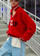Loose and Versatile Letter Contrast Color V-neck Sweater Knitted Top