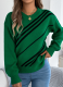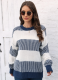 Casual Striped Round Neck Lantern Long-Sleeved Pullover Sweater