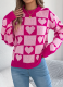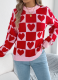 Heart Plaid Lantern Long Sleeve Pullover Sweater